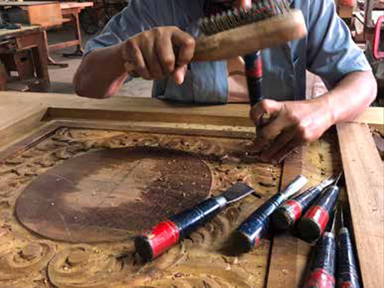 In addition to the woodwork, the woven textiles include upholstery, curtains, embroidery, and a special section for the production of French galon. Recently, the factory adopted computer-powered machines in order to implement large scale projects.