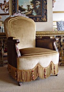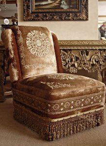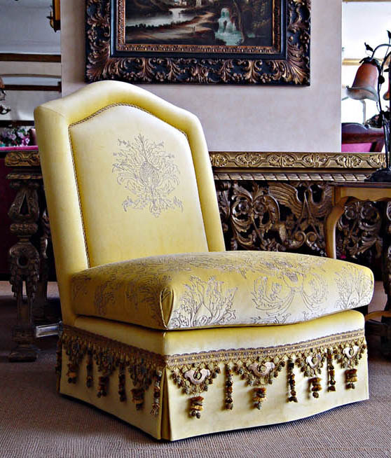 In addition to the woodwork, the woven textiles include upholstery, curtains, embroidery, and a special section for the production of French galon. Recently, the factory adopted computer-powered machines in order to implement large scale projects.